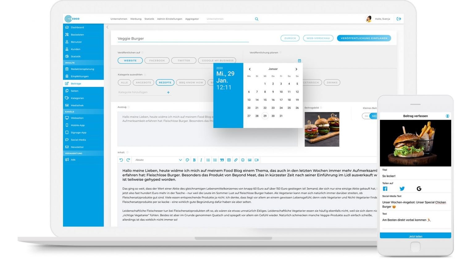 Inhalte einplanen und einfach über eine App steuern Deine Inhalte kannst du in COCO vorplanen. Sie werden zu dem von dir definierten Zeitpunkt auf deinen Kanälen veröffentlicht. Um dir die Kommunikation noch einfacher zu machen, stellen wir dir eine App zur Verfügung, mit der du auch von unterwegs in deinen Kanälen posten kannst.