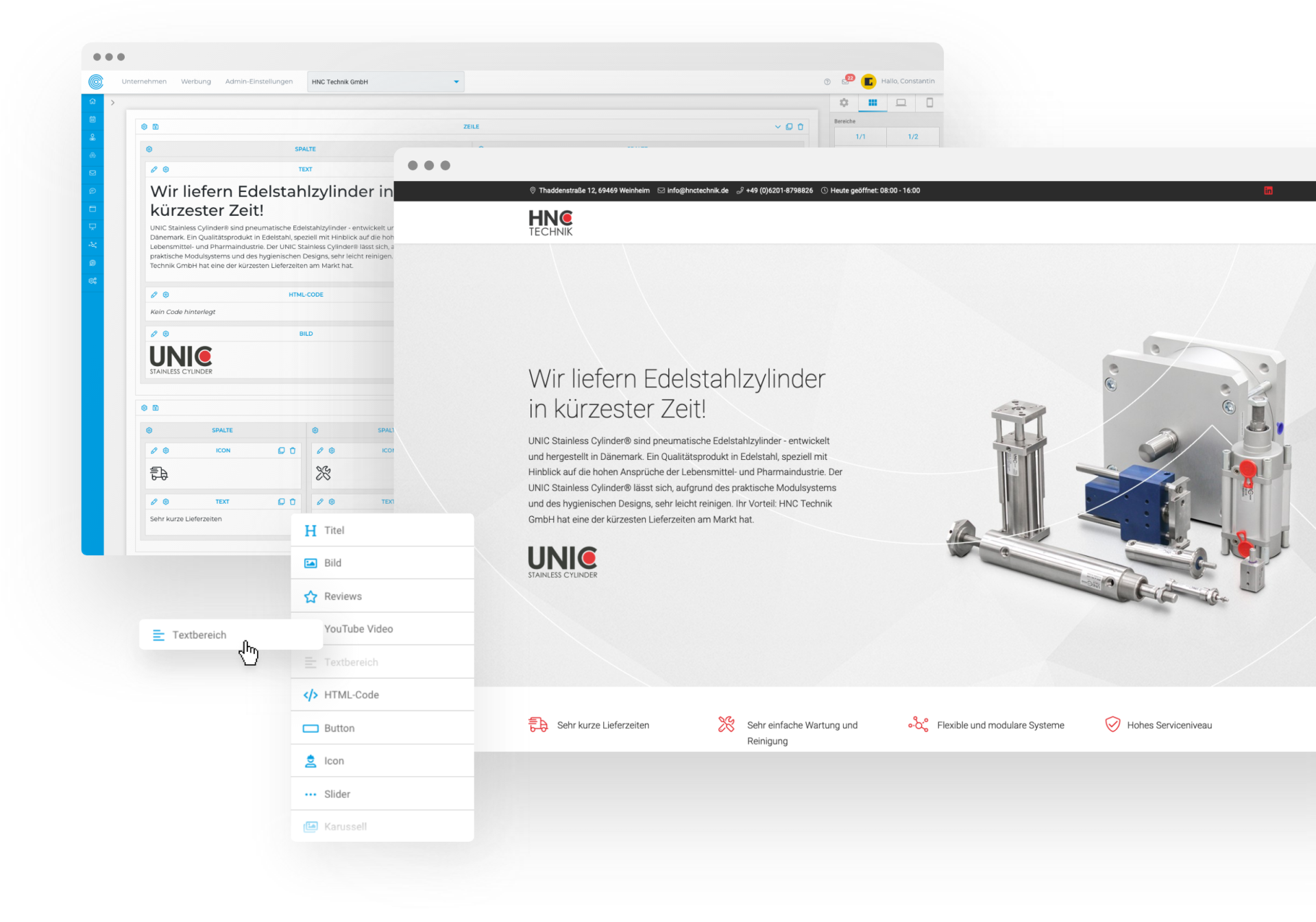 Mit dem Website-Baukasten von COCO baust du deine Homepage schnell und einfach auf. Oder noch einfacher: Wir übernehmen den Aufbau deiner Website für dich. Das System bringt eine Vielzahl an Funktionen für deine Webseite mit – u.a. ein Blog-Modul, angebundene Bilddatenbanken, verschiedene Formulare, Video-Player, Terminvereinbarung und einen Login-Bereich.